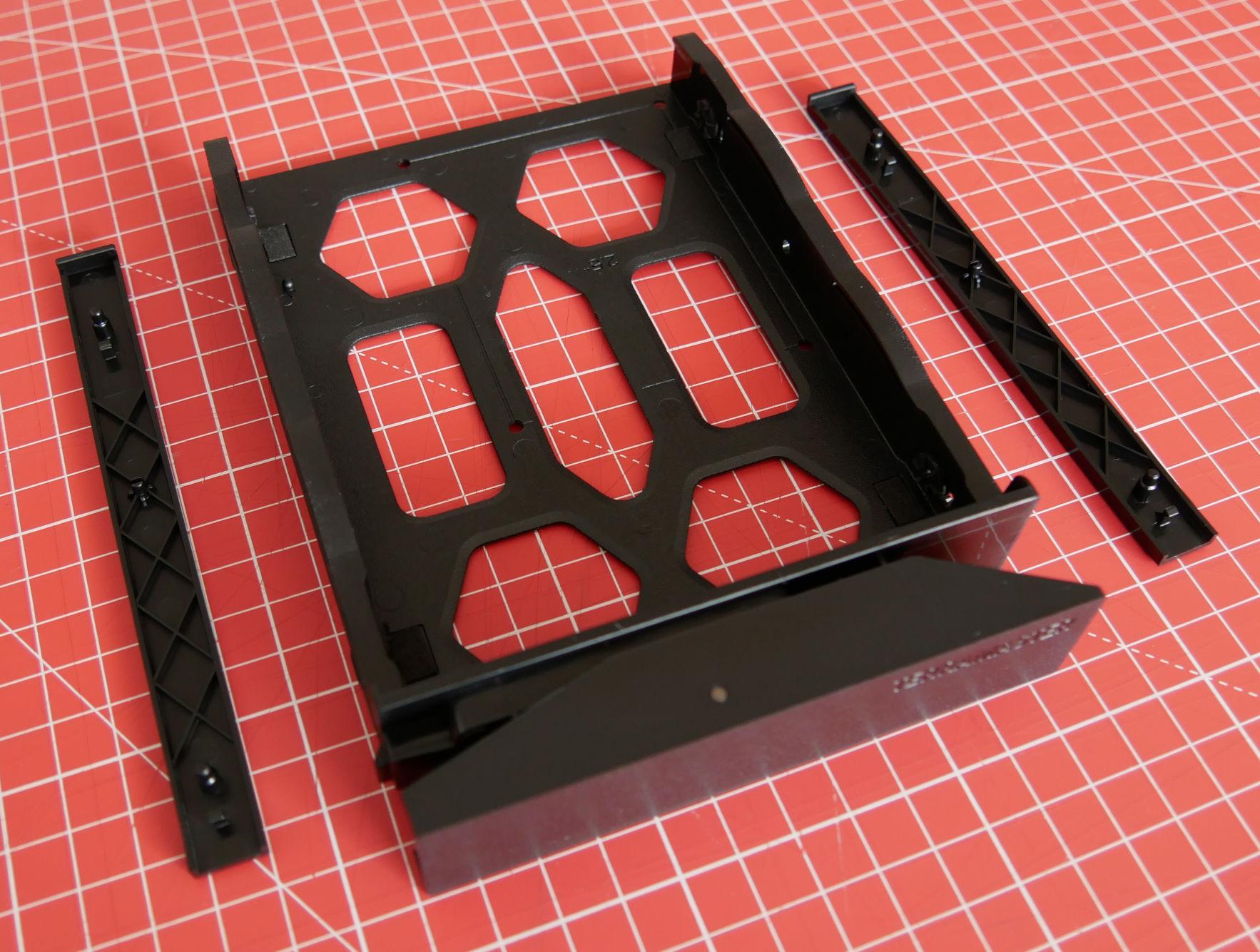 La mise en place du disque 3,5’’ dans le tiroir est classique. Il suffit d’enlever les languettes sur le côté, de placer le disque dans le tiroir et de replacer les languettes. Un disque 2,5 pouces sera quant à lui, maintenu par des vis.
