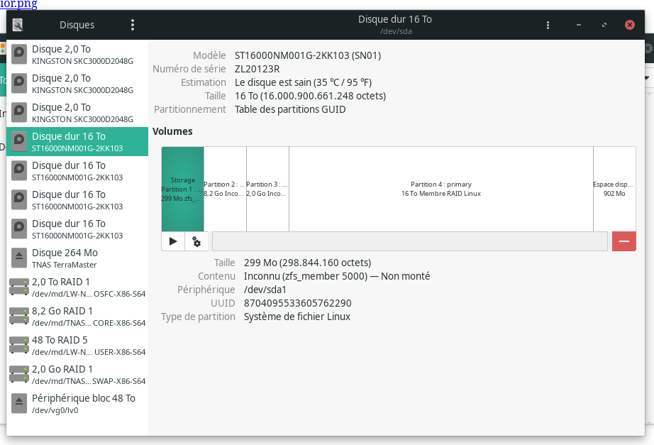 Voici mes propres observations, avec quatre disques durs Seagate Exos X16 de 16 To et trois disques NVMe KC3000 de Kingston :