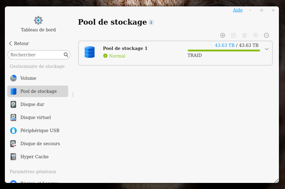 Si vous utilisez un disque NVMe comme disque système, il peut être intéressant de créer le premier espace de stockage et volume sur ce même disque. En effet, les applications provenant du centre d’applications s’installent par défaut dans le premier volume (cela est reconfigurable). Par la suite, vous pourrez toujours créer un volume avec une politique de RAID approprié sur les disques durs mécaniques et y stocker les données importantes auxquelles les applications pourront accéder.