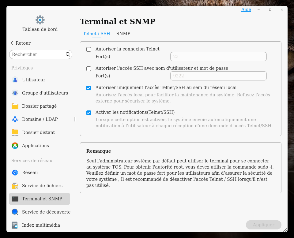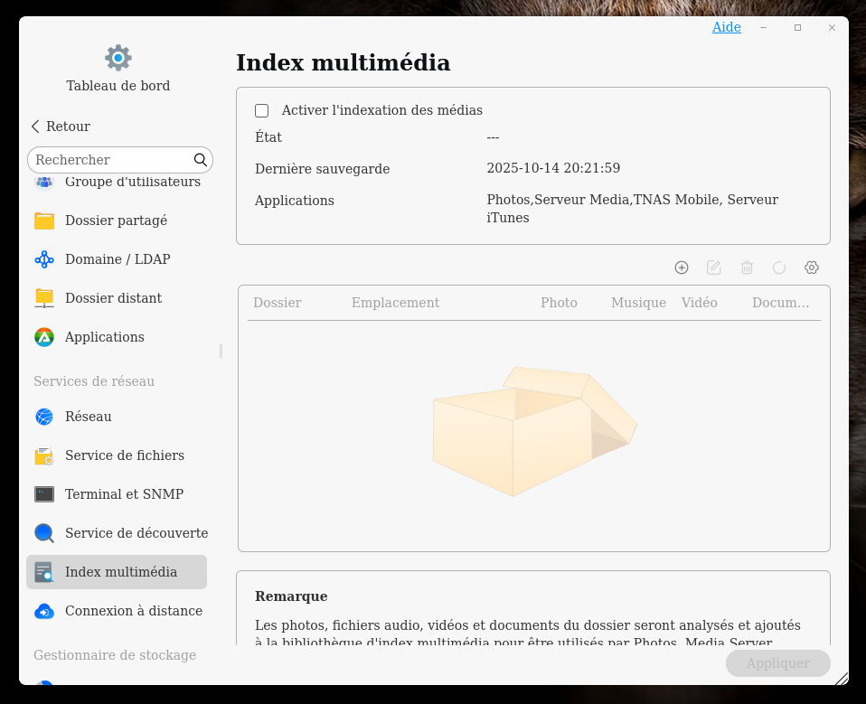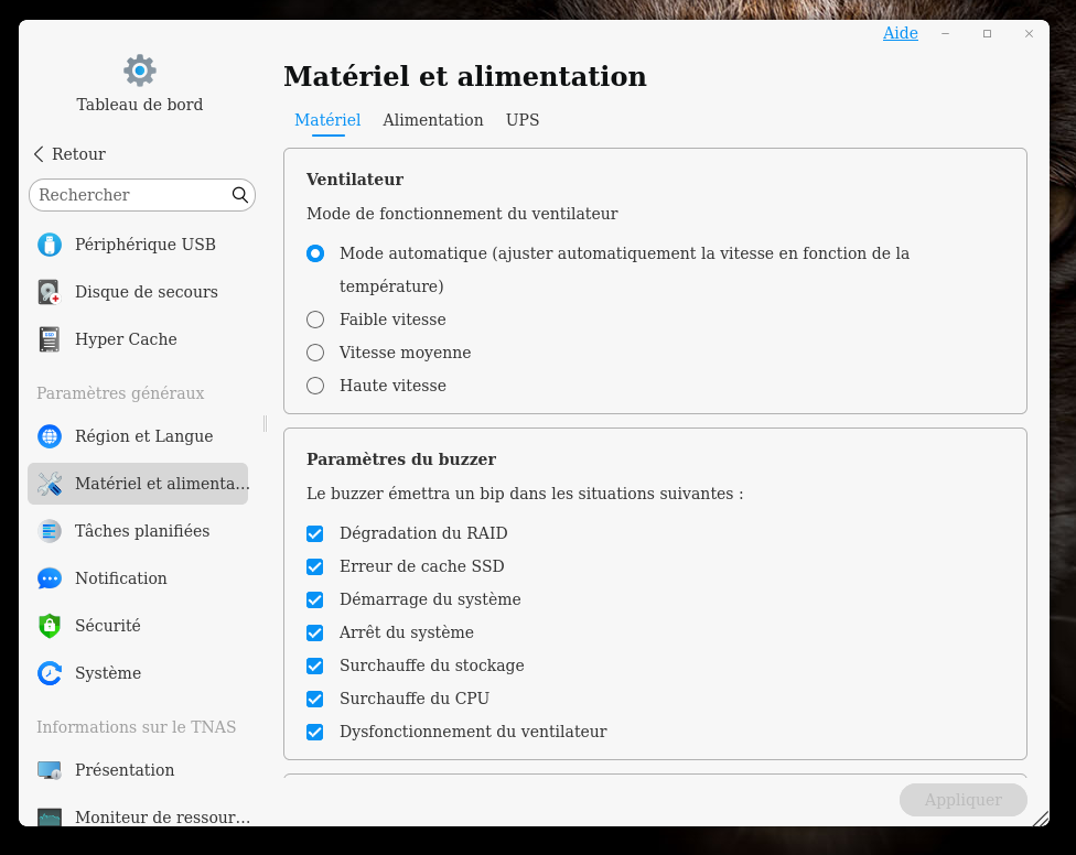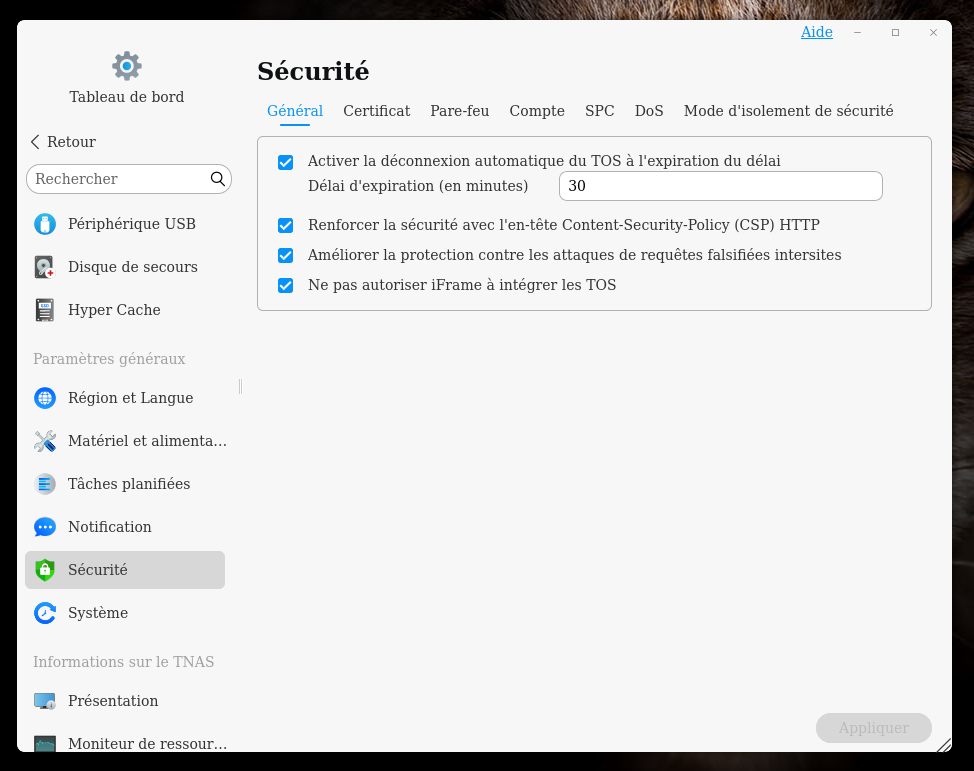 Au fil de l’utilisation du NAS (avec TOS en version 6.0.535), certains points ont été mis en évidence :