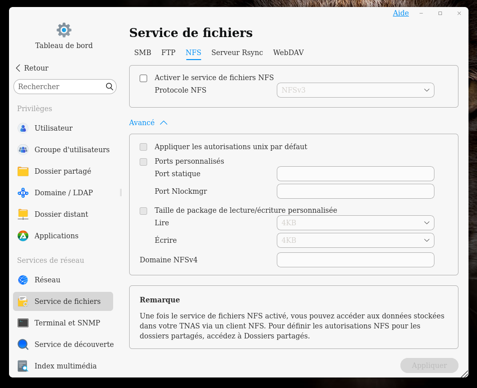 - les protocoles SMB, NFS (v3, v4 et v4.1), FTP, SFTP, WebDAV, HTTPS, SNMP, SSH ;