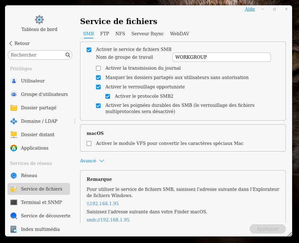 - il est préférable d’avoir une connaissance de l’administration d’un système Linux (et des services tels que SMB et NFS) lors de l’utilisation du NAS ;